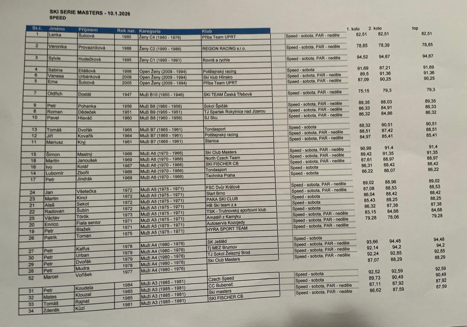 | 10.-11.1.2026 | Nová Paka | SSM | DH, PAR | SPEED – Výsledky 1 SPEED – Výsledky 2 PAR – Výsledky 1 PAR – Výsledky 2 |
