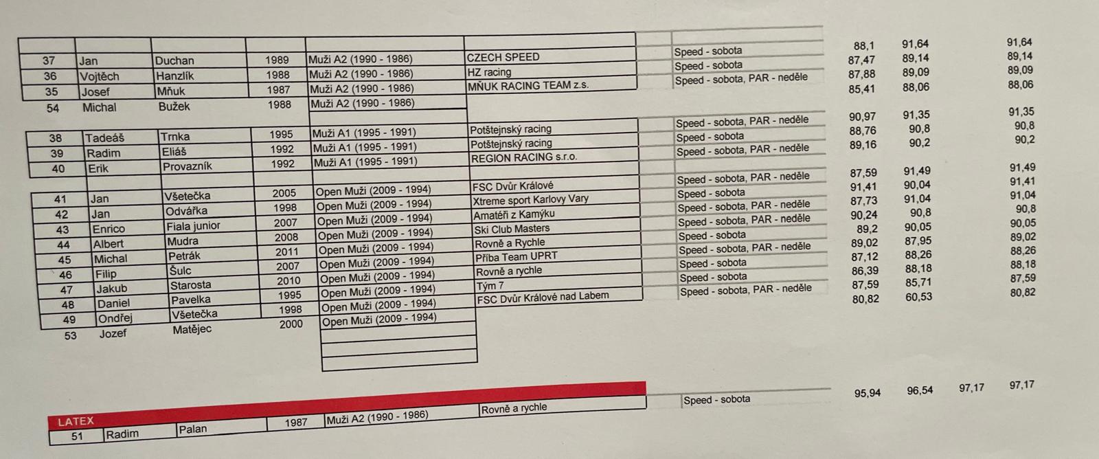 | 8.2. | Jablonec n. Jiz. | SSM / Memoriál Žemličky | GS, AC | Kamenec – GS – Výsledky Kamenec – AC – Výsledky |